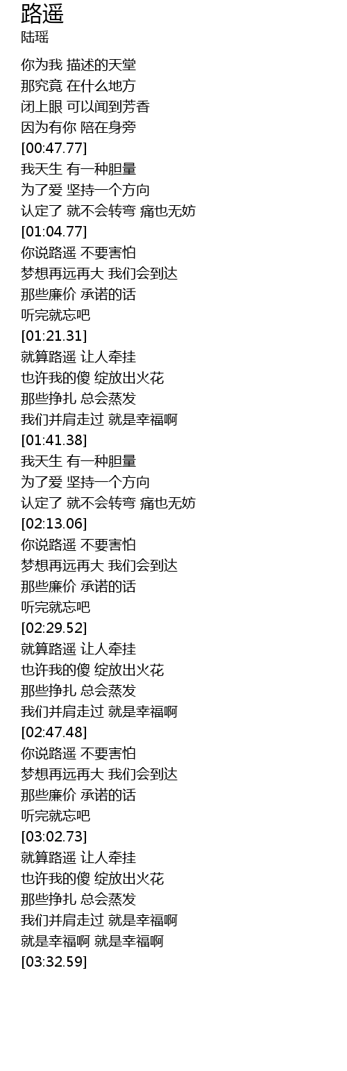 | [02:48.37] | 你说路遥 不要害怕 |