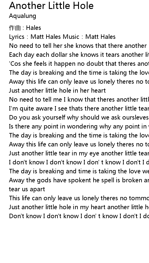 | ' Cos she feels it happen no doubt that theres another little hole in her heart | |