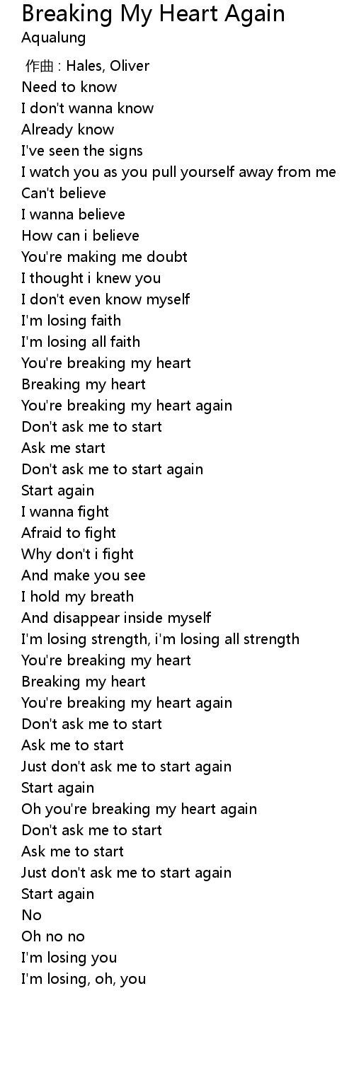 | [02:27.92] | Oh you're breaking my heart again |