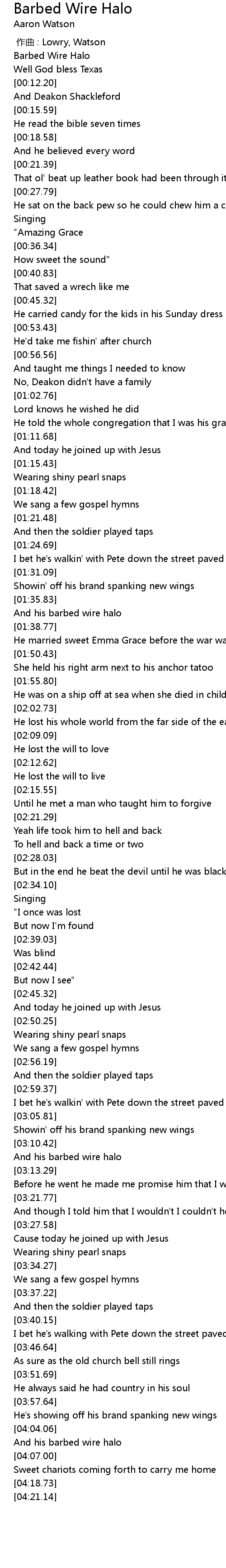| [04:05.19] | And his barbed wire halo |