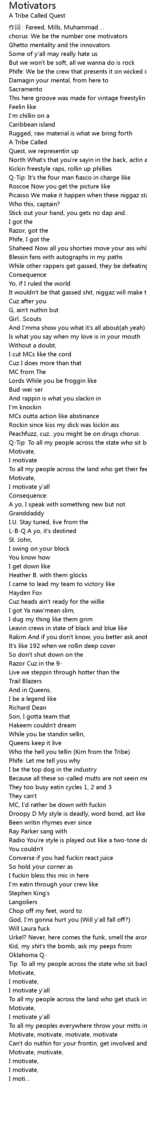 | Phife: We be the crew that presents it on wicked instrumental | |