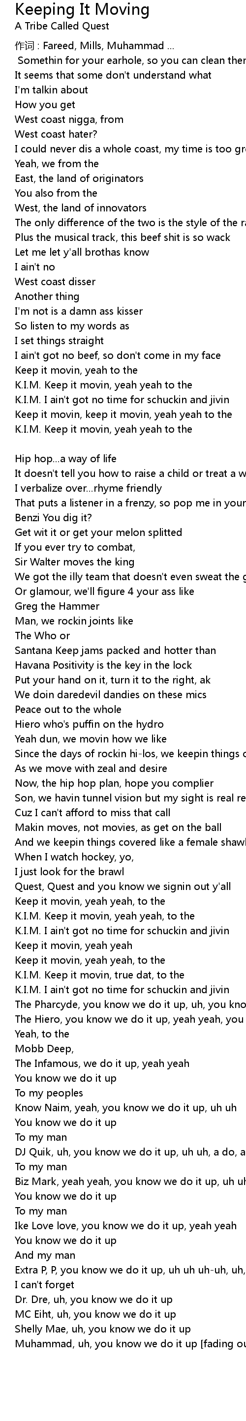 | K.I.M. Keep it movin, yeah yeah, to the | |