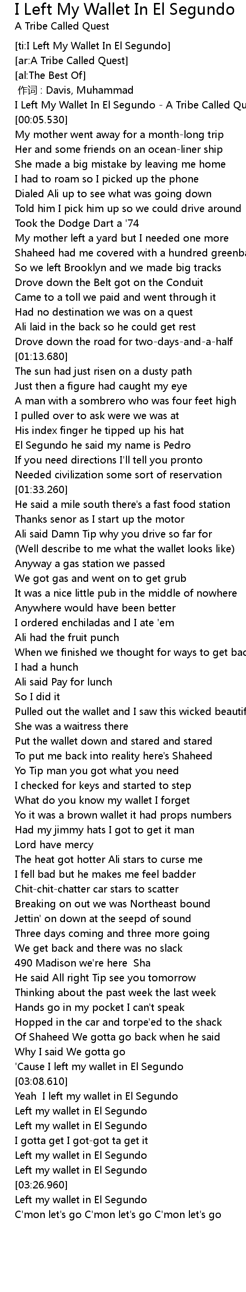 | [00:01.340] | I Left My Wallet In El Segundo A Tribe Called Quest |