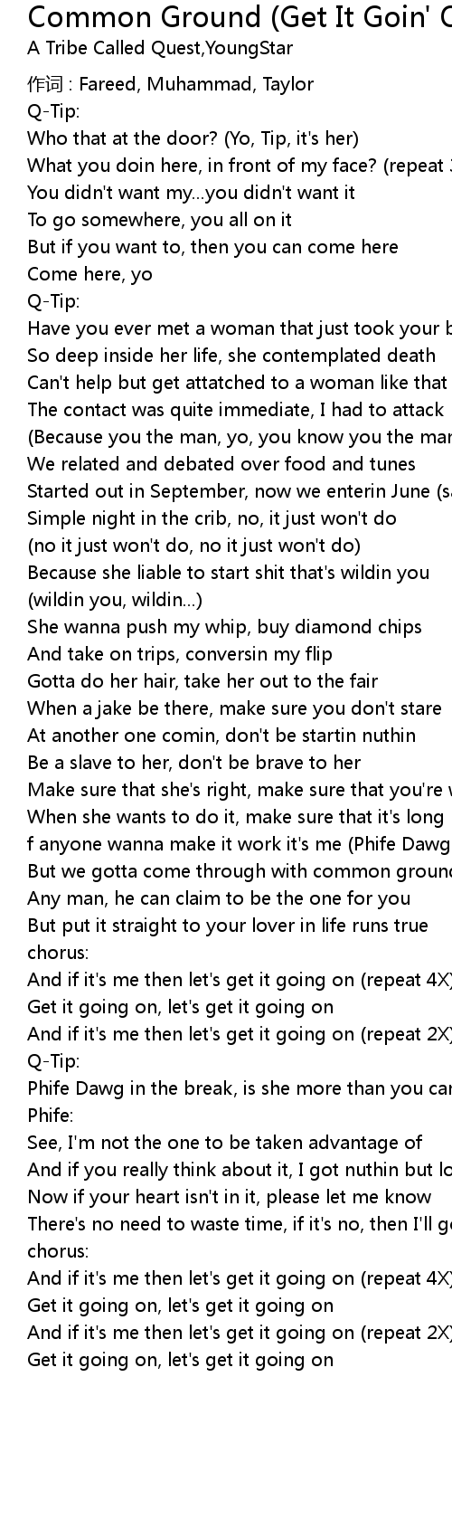 | But we gotta come through with common ground baby | |