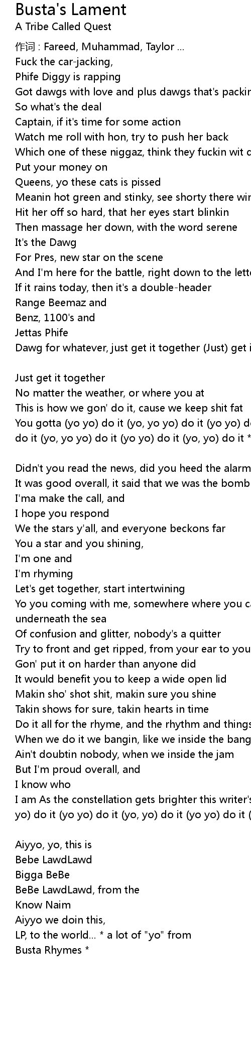| Dawg for whatever, just get it together (Just) get it together (Just) get it together (Just) get it together [Q-Tip] | |