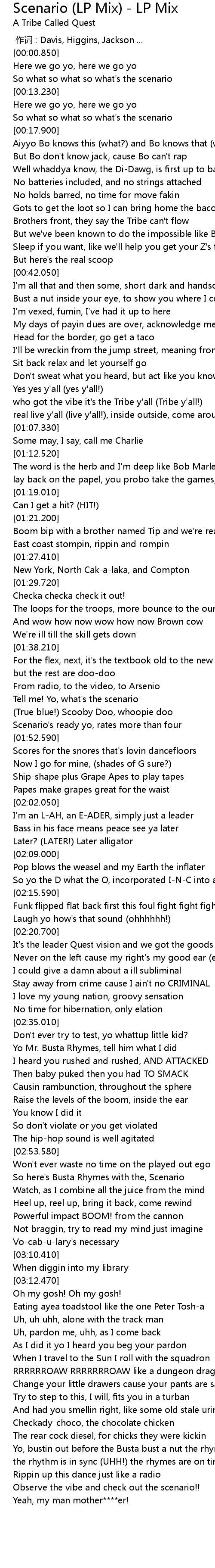| [01:46.190] | Tell me! Yo, what's the scenario |