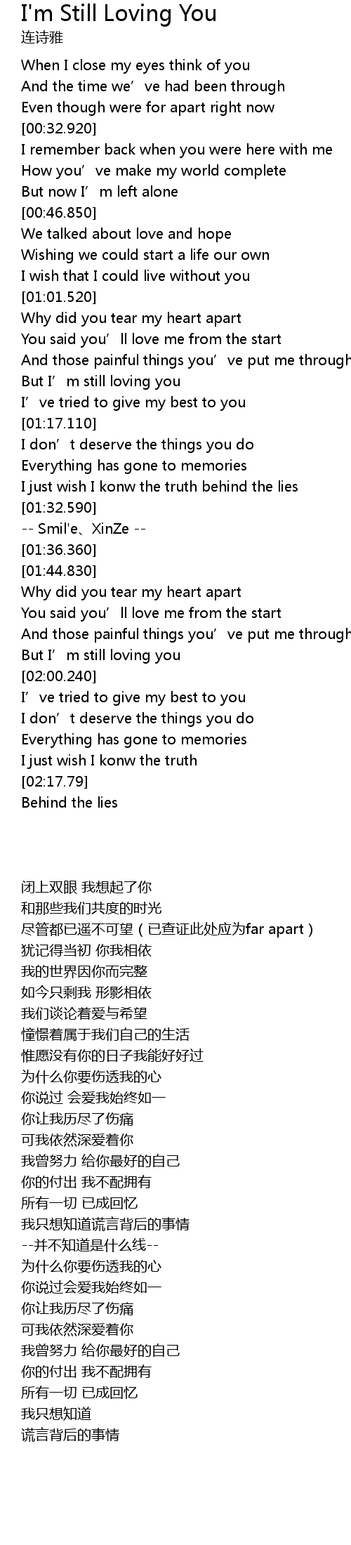 | [01:57.930] | But I' m still loving you |