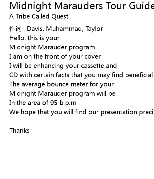 | Song | Midnight Marauders Tour Guide |