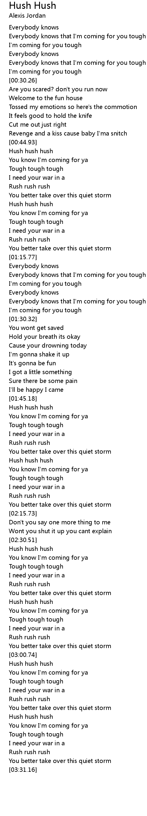 Hush hush hush |