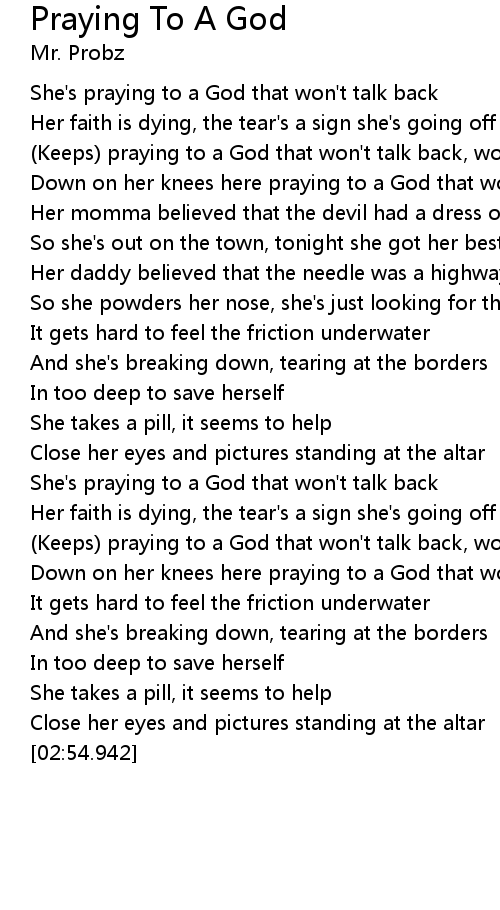 (Keeps) praying to a God that won't talk back, won't talk back |
