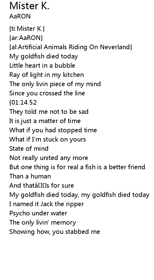 | [01:56.89] | My goldfish died today, my goldfish died today |