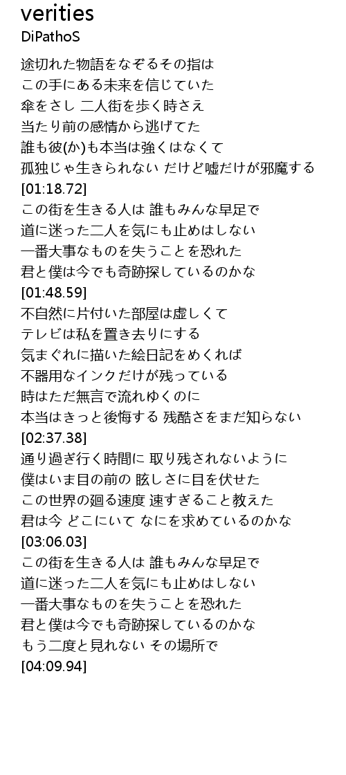 | [00:39.82] | 途切れた物語をなぞるその指は |