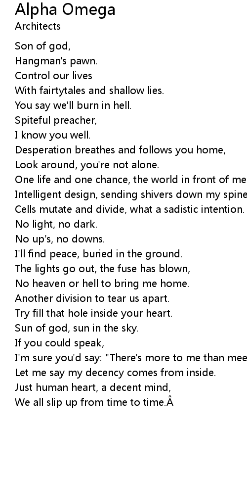 | Song | Alpha Omega |