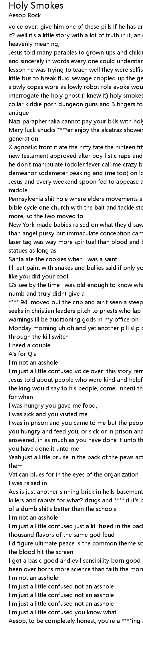 I'm just a little confused just a lit 'fused in the back of the pews watching a thousand flavors of the same god feud |