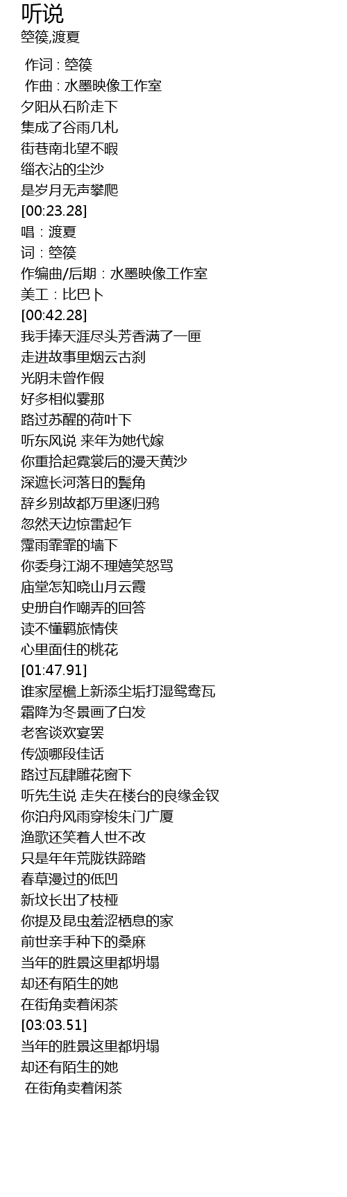 | [00:34.28] | 作编曲/后期:水墨映像工作室 |