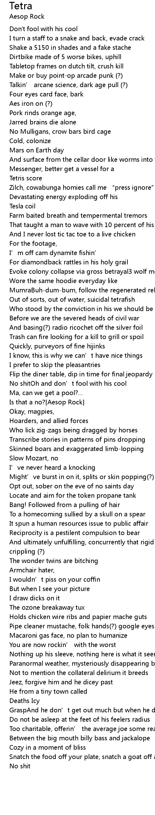 | Is that a no?[Aesop Rock] | |