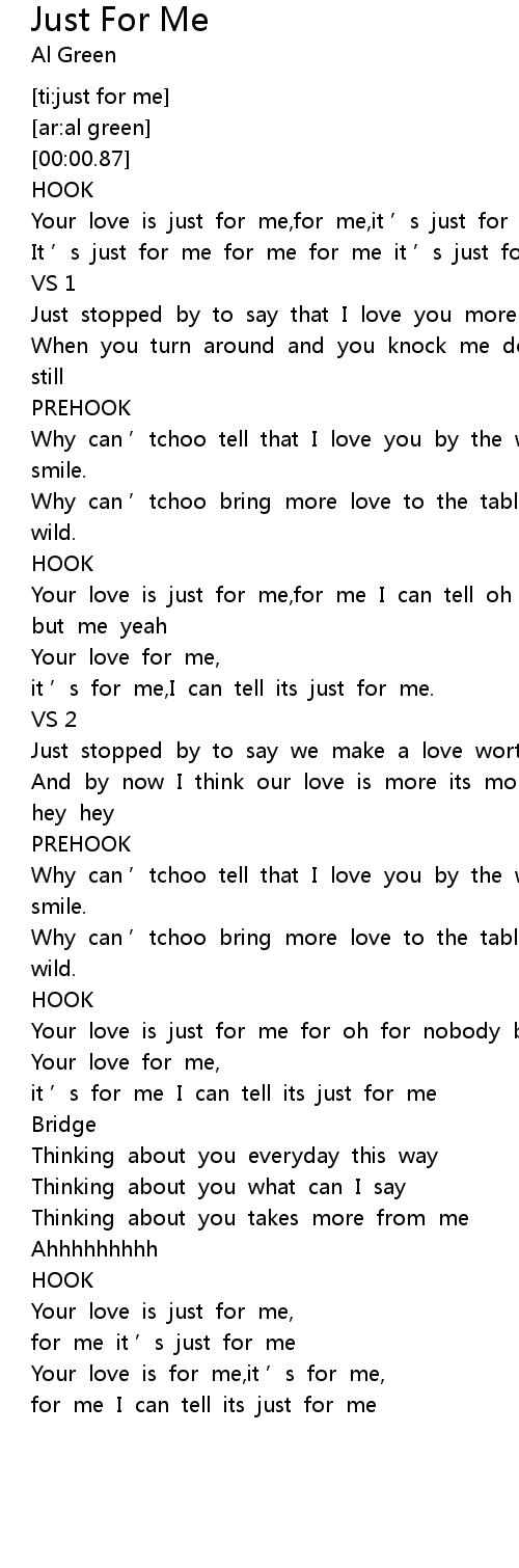 | [00:21.03] | It ' s just for me for me for me it ' s just for me |