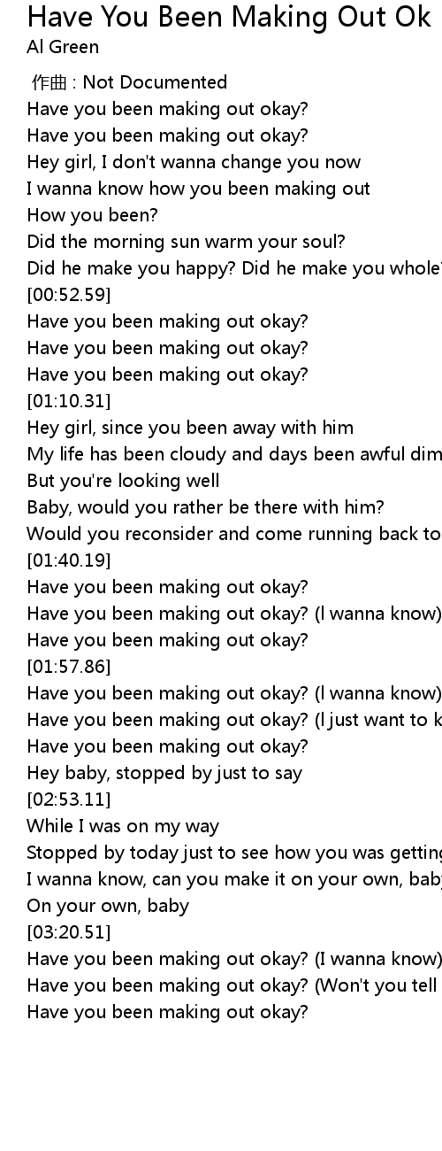 | [03:27.540] | Have you been making out okay? (Won't you tell me tell me?) |