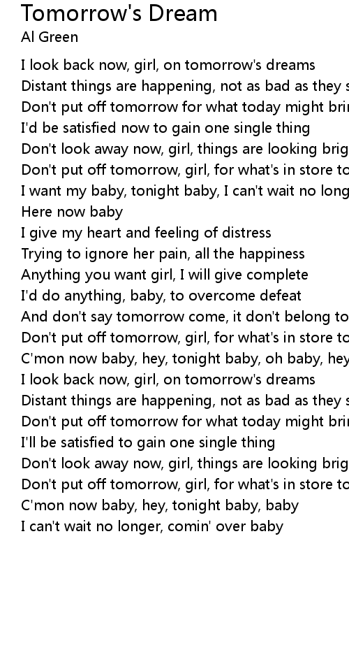 I look back now, girl, on tomorrow's dreams |
