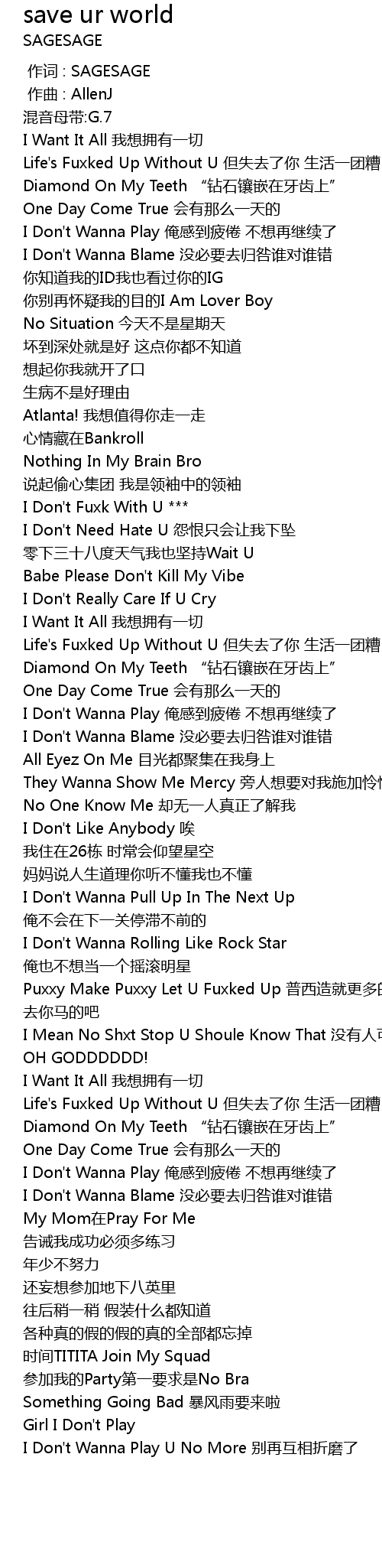 | [01:40.023] | Puxxy Make Puxxy Let U Fuxked Up 普西造就更多的普西 去你马的吧 |