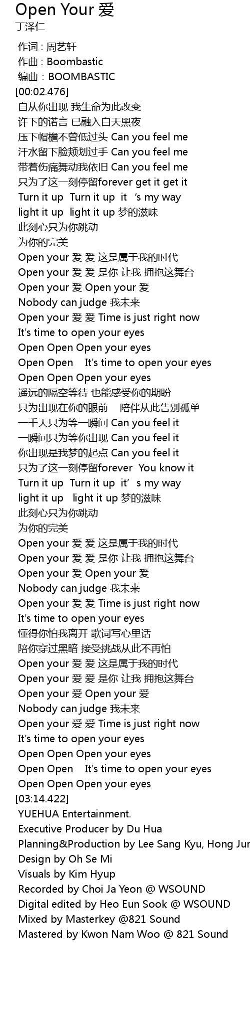 | [02:11.831] | Open your 爱 Open your 爱 |