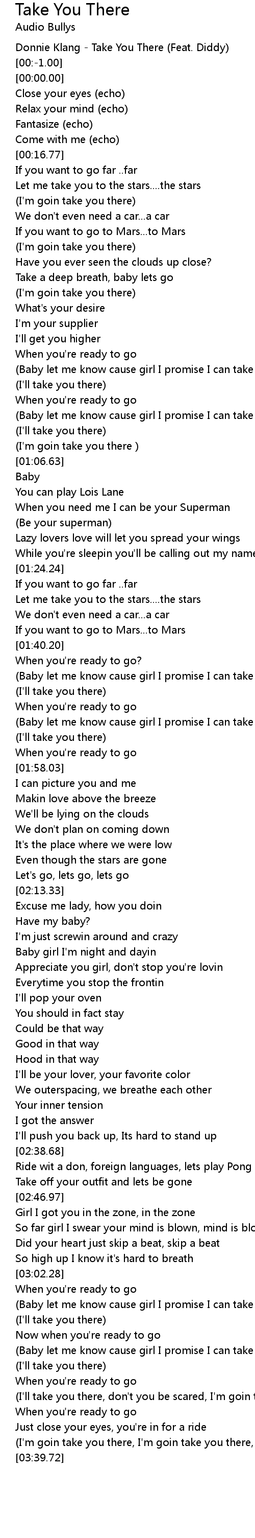 (I'll take you there, don't you be scared, I'm goin take you there) |