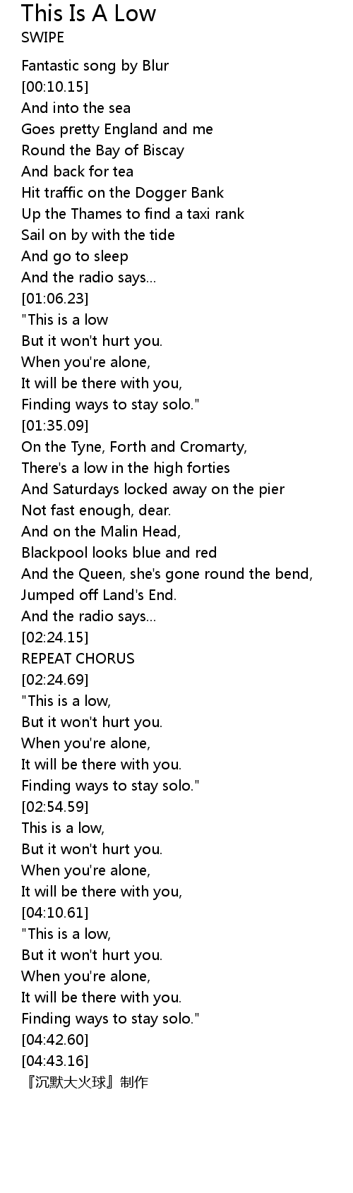 | [04:11.09] | " This is a low, |