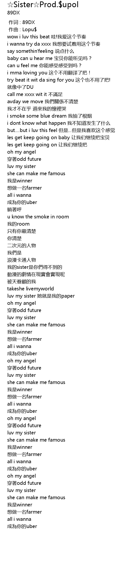 | [01:16.443] | luv my sister tā jiù shì wǒ de paper |