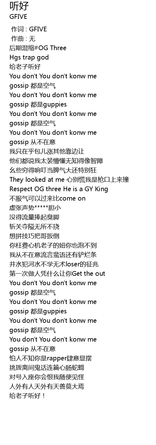 | [01:48.363] | gěi lǎo zi tīng hǎo! |