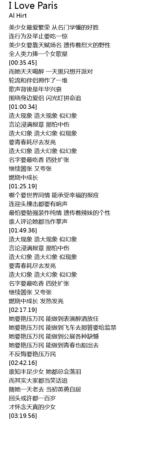 | [02:35.07] | 她要艳压万民 能做到青春也豁出去 |