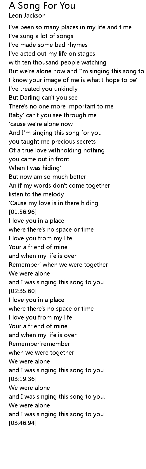 But we're alone now and I'm singing this song to you |