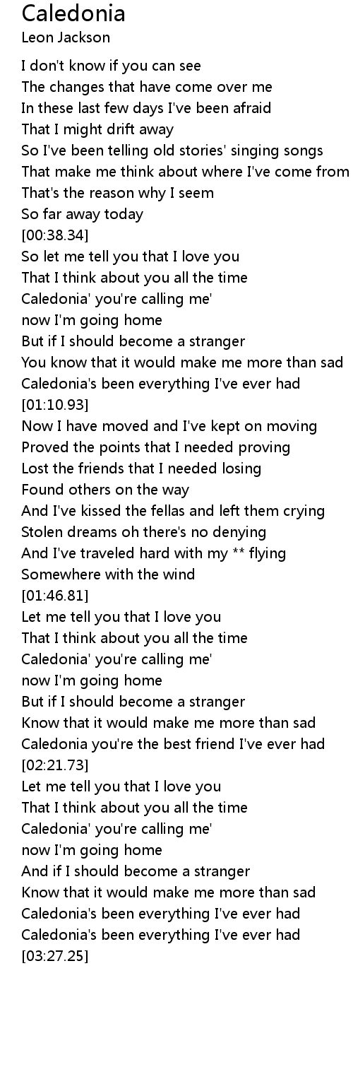 Caledonia's been everything I've ever had |