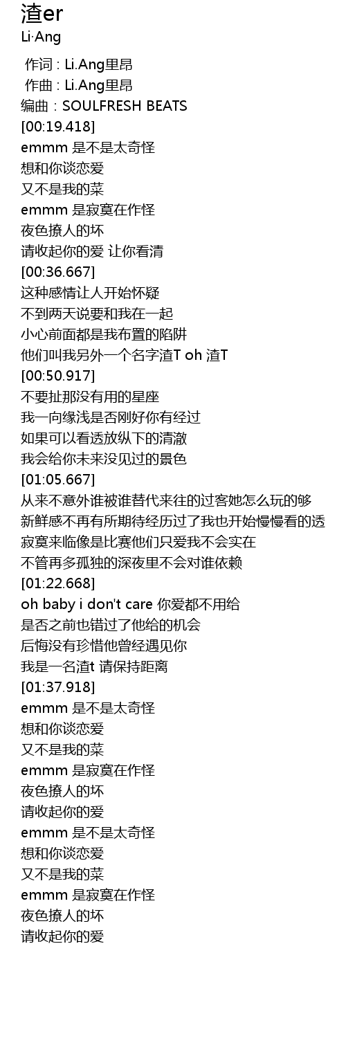 | [00:15.668] | 编曲:SOULFRESH BEATS |