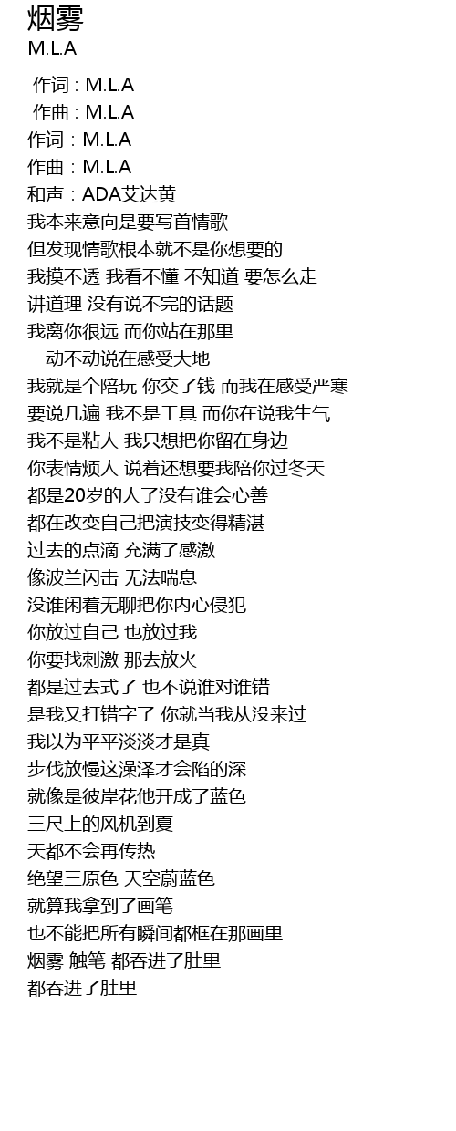 | [00:00.000] | 作词 : M.L.A |