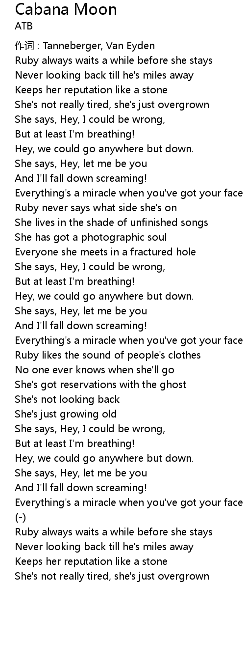 | Song | Cabana Moon |