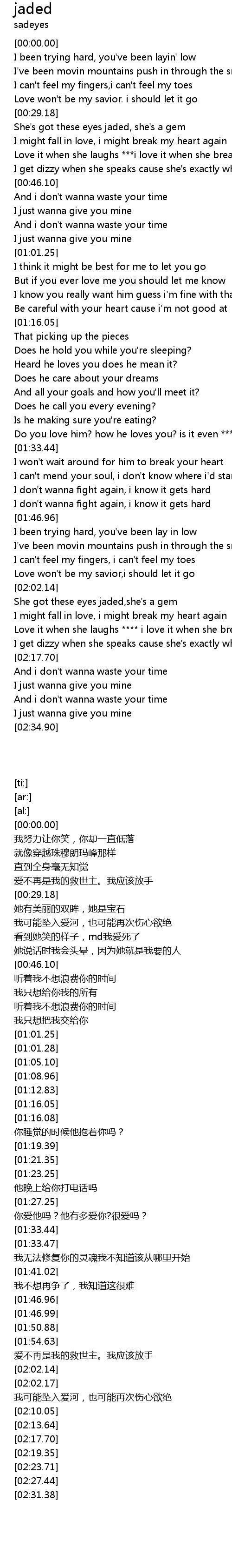 | [02:02.17] | She got these eyes jaded,she's a gem |