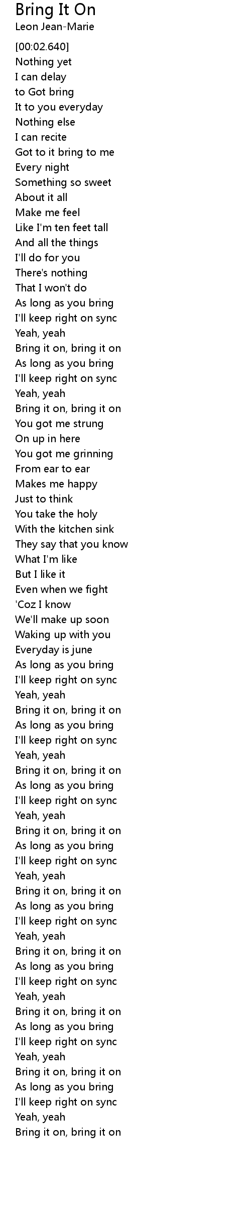 Bring It On Lyrics