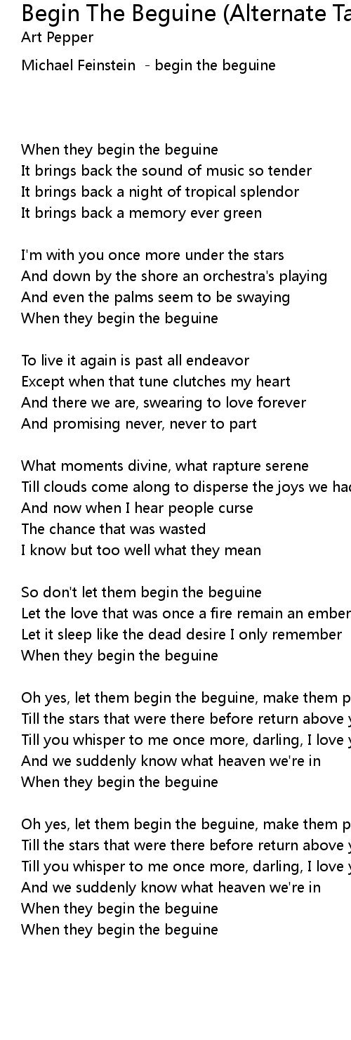 When they begin the beguine |