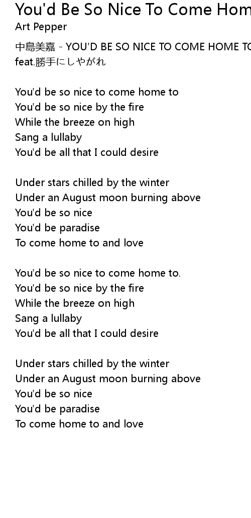 | zhong dao mei jia YOU' D BE SO NICE TO COME HOME TO | |