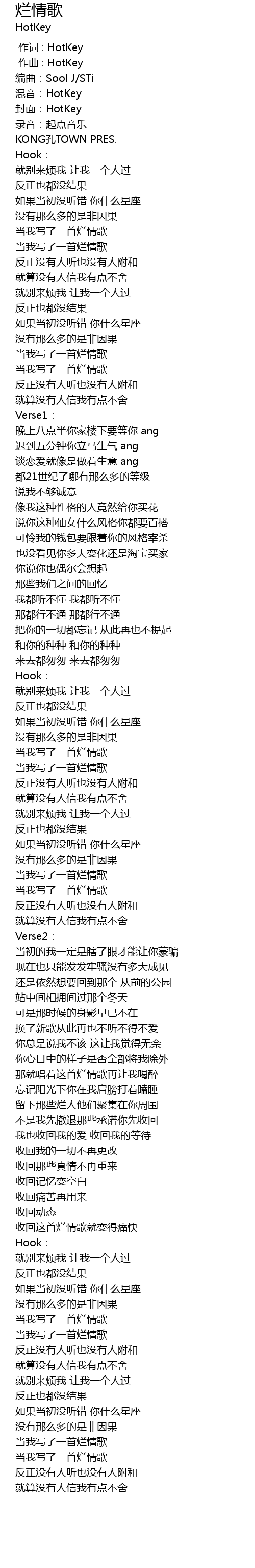 | [00:00.000] | 作词 : HotKey |