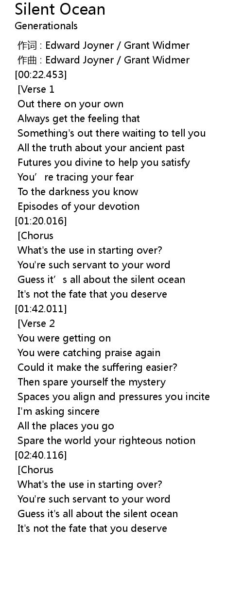 | [03:11.583] | Guess it's all about the silent ocean |