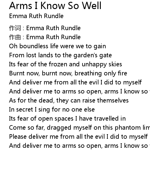 | Song | Arms I Know So Well |