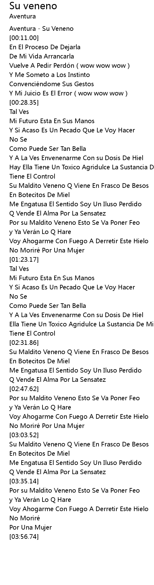 | [00:02.00] | Aventura - Su Veneno |