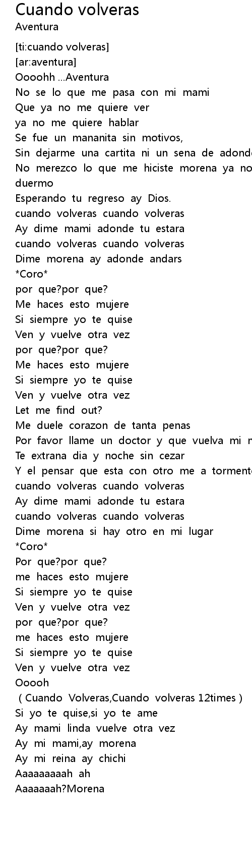 | [02:48.965] | (Cuando Volveras,Cuando volveras 12times) |