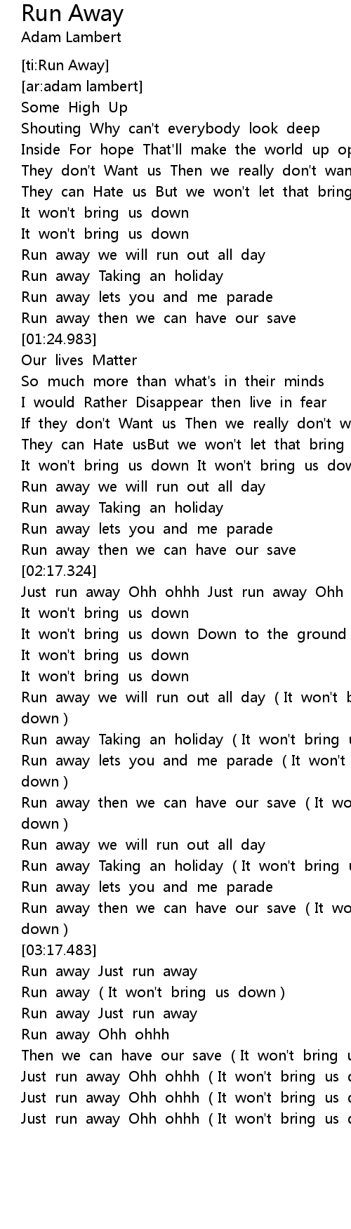 | [02:58.182] | Run away then we can have our save It won' t bring us down |