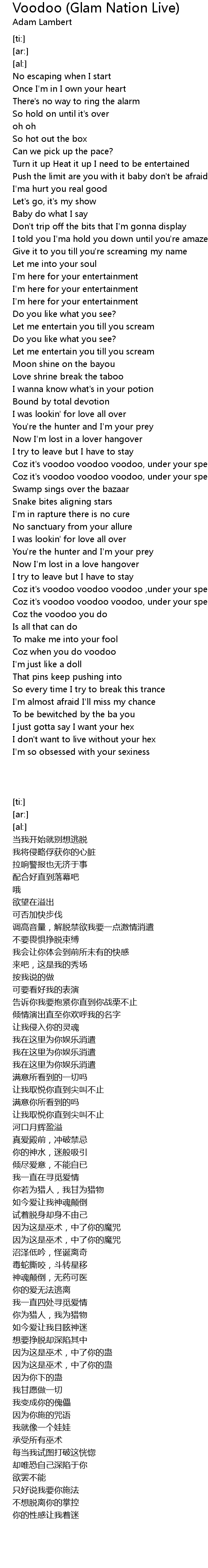 Coz it's voodoo voodoo voodoo ,under your spell |