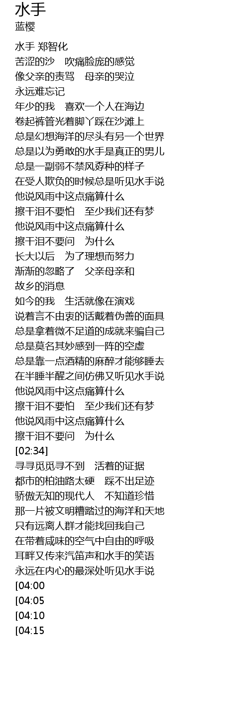 | [03:36] | 永远在内心的最深处听见水手说 |
