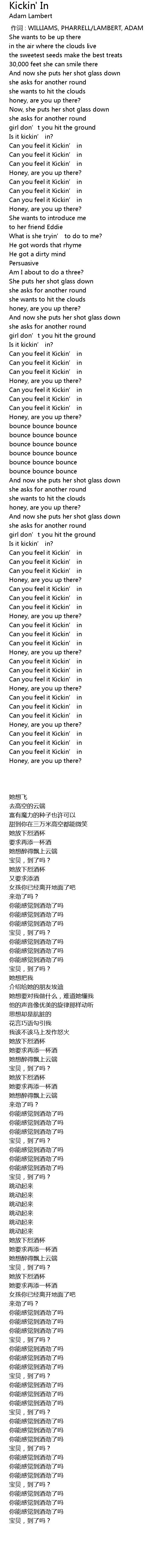 | [00:00.00] | 作词 : WILLIAMS, PHARRELL/LAMBERT, ADAM |
