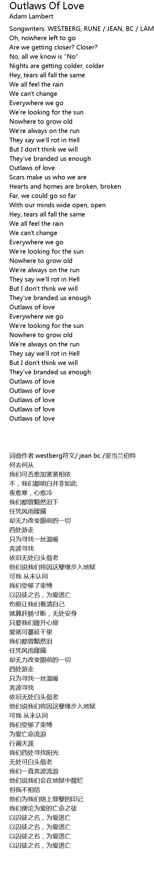 Songwriters: WESTBERG, RUNE / JEAN, BC / LAMBERT, ADAM |