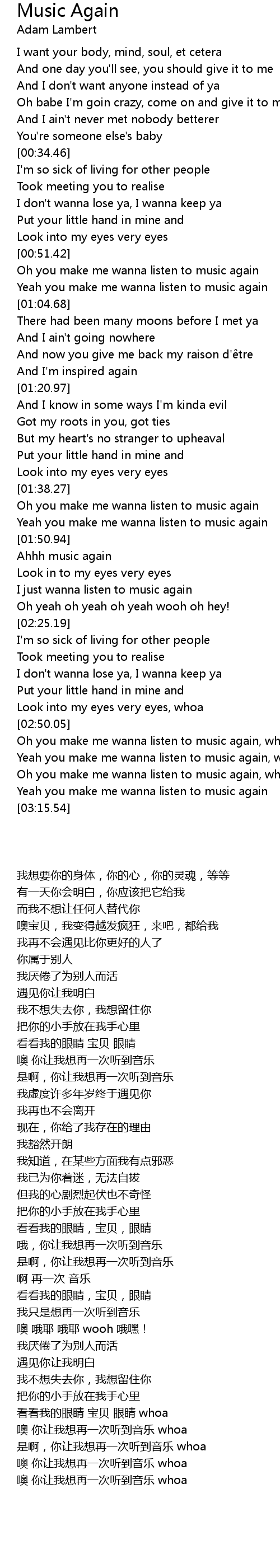 | [03:02.70] | Oh you make me wanna listen to music again, whoa |